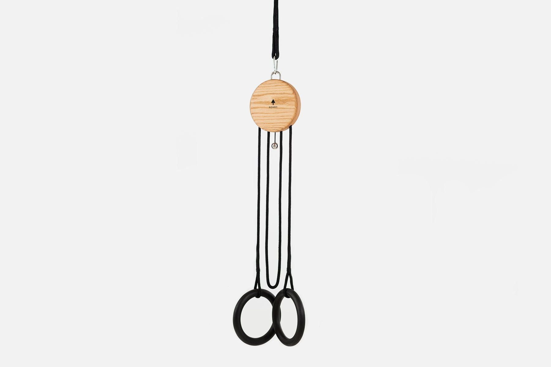 Pevné pouzdro z masivního dřeva v kombinaci s černě mořenými kruhy o průměru 24 cm dodává trenažéru NOHRD Sling přirozený vzhled. Závěsný systém lze snadno připevnit pomocí karabiny ke stropu nebo větvi.