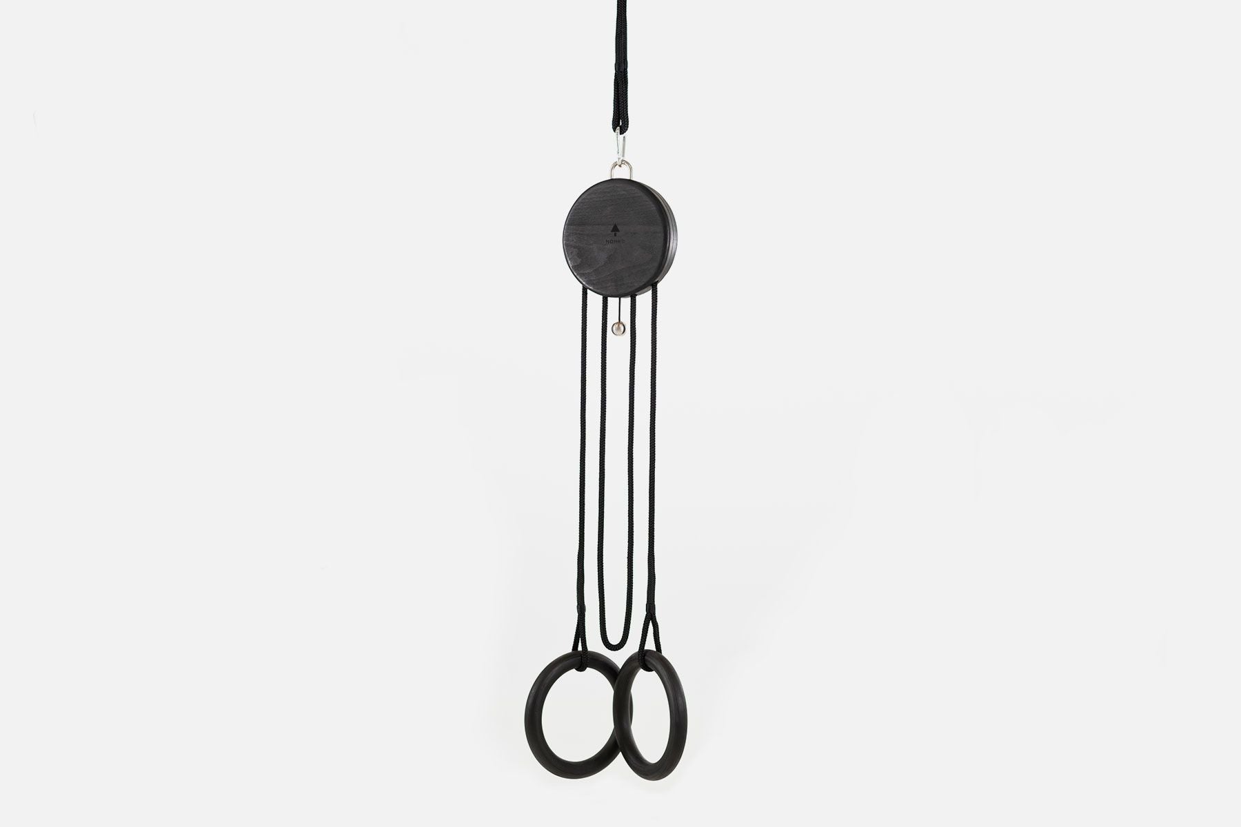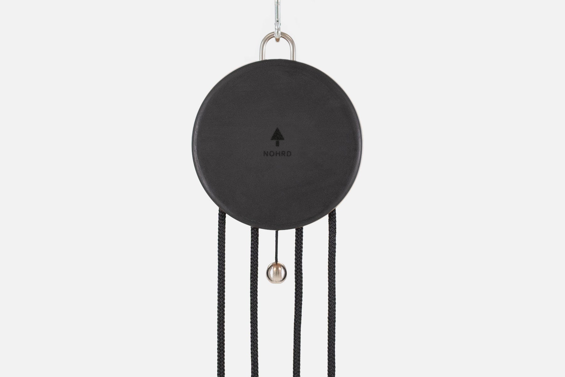 Pevné pouzdro z masivního dřeva v kombinaci s černě mořenými kruhy o průměru 24 cm dodává trenažéru NOHRD Sling přirozený vzhled. Závěsný systém lze snadno připevnit pomocí karabiny ke stropu nebo větvi.